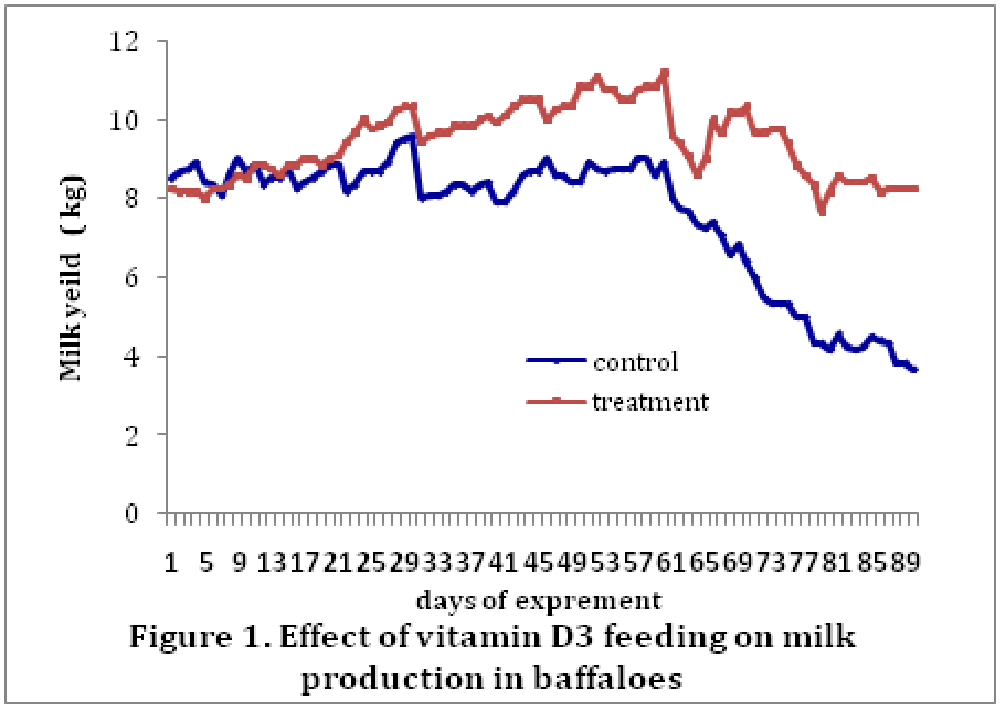 Present investigation was carried out to find out the effect of vitamin D3 on milk production, circulatory hormones and plasma minerals in buffaloes.