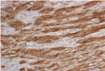 Stains S100 and SOX-10 will be positive and other classic markers such as CD34 and CD1117 must be negative. STAT6 immunohistochemistry, a reliable surrogate for detection of the NAB2-STAT6 fusion gene seen in solitary fibrous tumors, must also be negative. Negative markers for smooth muscle (Actin, Desmin) and negative melan-A will differentiate the tumor from the more common leiomyoma, and melanoma, respectively [5].