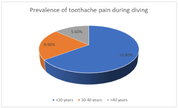 Conclusions: Periodontal pain was an uncommon complication during diving, toothache was more prevalent in divers ≤30 years of age (16.2%). The other dental problems experienced by divers were headache (49%), sinus pain (32.2%), jaw pain (22.1%) and toothache (16.2%).